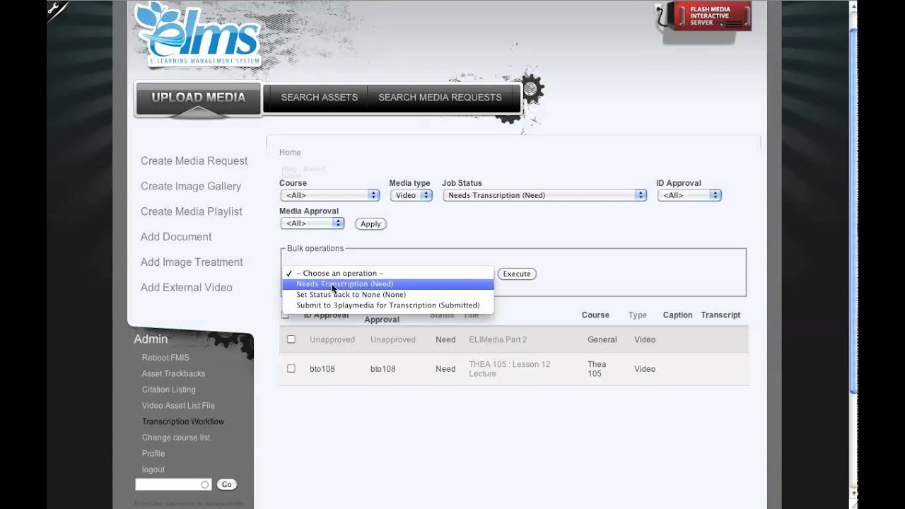 As accessibility becomes increasingly important, having a simple, automated captioning and transcription workflow is a top priority for the e-Learning Institute. The ELIMedia Server provides a streamlined solution for faculty and staff who need to add captions or transcripts for video or audio. Users can select files for processing and the captions and transcripts are automatically re-associated with the media files after they are completed. The videos can then be embedded directly into a course through the integration of embed codes. Penn State University is continuing to work with 3Play Media to develop a fully automated workflow that minimizes manual intervention and would be scalable for a university-wide implementation. The ELIMedia Server uses Drupal for the front-end interface and Flash Media Server for the back end.