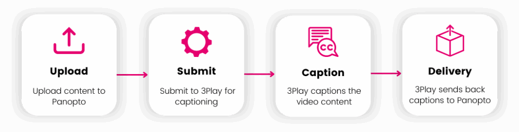 ISC has integrated 3Play Media’s captioning services with Panopto, helping to automate the captioning workflow for schools and centers. This seamless Panopto integration reduces administrative tasks across the board, saving time and ensuring users can access quality captioning through a reliable workflow.
