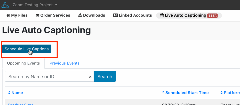 Step 4: Within 3Play Media, Click Schedule Live Captions