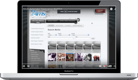 As accessibility becomes increasingly important, having a simple, automated captioning and transcription workflow is a top priority for the e-Learning Institute. The ELIMedia Server provides a streamlined solution for faculty and staff who need to add captions or transcripts for video or audio. Users can select files for processing and the captions and transcripts are automatically re-associated with the media files after they are completed. The videos can then be embedded directly into a course through the integration of embed codes. Penn State University is continuing to work with 3Play Media to develop a fully automated workflow that minimizes manual intervention and would be scalable for a university-wide implementation. The ELIMedia Server uses Drupal for the front-end interface and Flash Media Server for the back end.